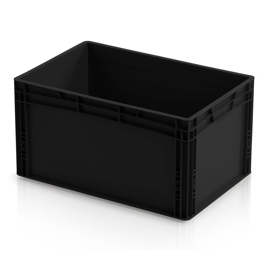 EURO ESD prepravky sú vhodné na bezpečné skladovanie a prepravu elektronického tovaru a úplne bezpečné pre elektrokomponentov - zamedzujú vzniku elektrostatického náboja. EURO ESD sú vyrobené z kvalitného a vodivého polypropylénu čiernej farby.