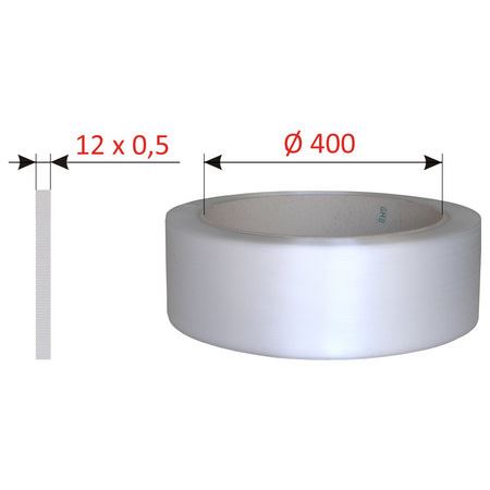 Viazacie polypropylénové pásky GRANOFLEX? sú vhodné pre automatické páskovacie stroje aj pre ručné páskovačky. Spájanie možno vykonávať pomocou ručných páskovačov plechovú, drôtenou alebo plastovou sponou. Na automatických strojoch je spojenie vytvorené zvarom. Šírka pásky: 12 mm Hrúbka pásky: 0,50 mm Priemer dutinky: 400 mm Bava pásky: biela Návin: 3000 m